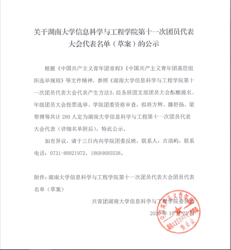 关于yl6809永利YL集团第十一次团员代表大会代表名单(草案)的公示