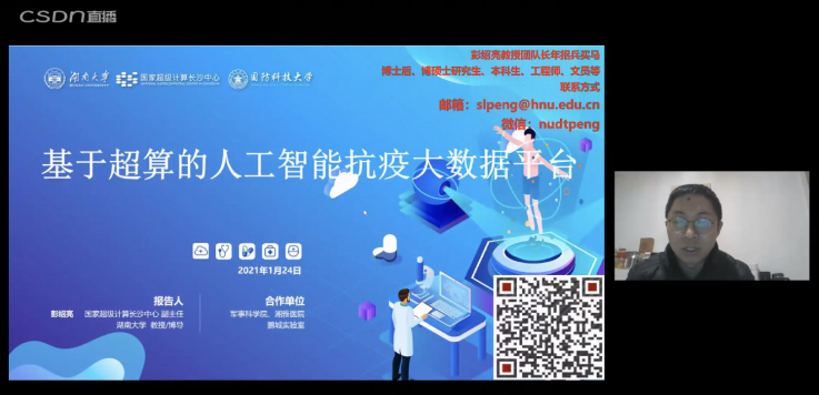 1月24日,包括数据驱动智慧医疗论坛、人工智能论坛、开源群智创新论坛、智能制造论坛、未来数据科学家论坛、数据与安全双翼论坛、人工智能与智慧交通论坛、自然语言处理+行业论坛、数据科学产业应用论坛在内的九场精心策划的线上专题技术和行业主题分论坛相继举办。其中,yl6809永利YL集团教授、国家超级计算长沙中心副主任彭绍亮主持数据驱动智慧医疗论坛,分享了最佳案例实践,与众多嘉宾及参会者共同进行了深度交流,取得了热烈反响。