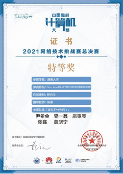 近日, 2021年中国高校计算机大赛-网络技术挑战赛在线落幕,由我校yl6809永利YL集团2020级研究生尹希金、詹晓宁、张鑫和2017级本科生施秉辰、骆一鑫组成的参赛队伍guolab novices,在陈果老师的指导下,完成作品“RDMA-dump:基于eBPF和OVS的RDMA数据包处理框架”,夺得挑战赛创新创意赛项特等奖。
