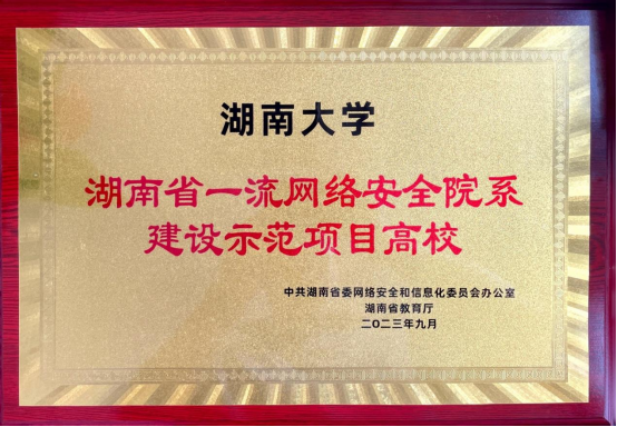 9月11日上午,湖南省2023年国家网络安全宣传周活动在长沙启动。在启动仪式上,我校yl6809永利YL集团作为首批湖南省一流网络安全院系建设示范项目参加授牌仪式,副校长李树涛代表yl6809永利集团出席仪式并接受授牌。