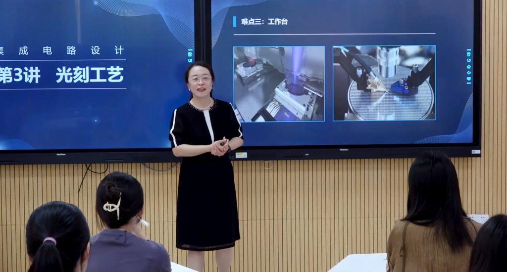 自开赛以来,学院对比赛高度重视,邀请专家对参赛教师进行全程指导,孙晶茹老师按要求认真备课,精心打磨,她结合《集成电路设计》课程特点,建立了“以传奇人物激发学习兴趣;以行业发展启发创新意识;以突出成就建立民族自信;以典型案例开拓全球视野;以国家需要树立报国志向;以经典案例激发爱国热情;以法律规章惊醒道德操守;以哲学思想培养辩证思维”的思政元素挖掘融入方法,呈现了多维度的思政课堂,体现了她扎实的教学功底和专业能力。