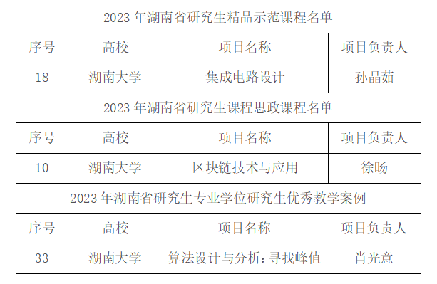 日前,根据湖南省教育厅发布《关于公布2023年湖南省研究生精品示范课程等立项及2019年研究生教学平台项目的通知》(湘教通[2024]18号),我院2门课程分别获得湖南省研究生精品示范课程和课程思政示范课程立项,1个教学案例获湖南省研究生专业学位研究生优秀教学案例。