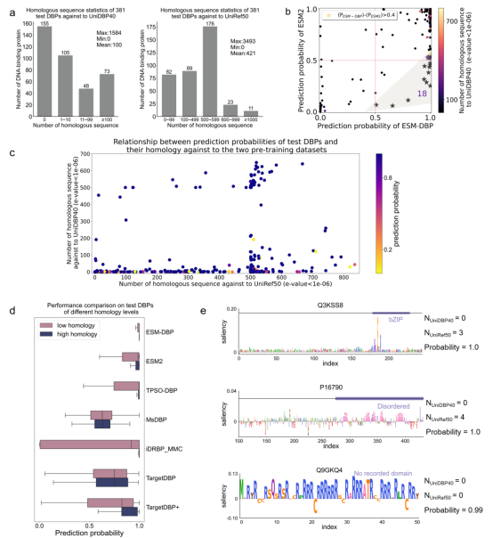 可解释性分析揭示了ESM-DBP对天然的DNA结合域的高度关注。