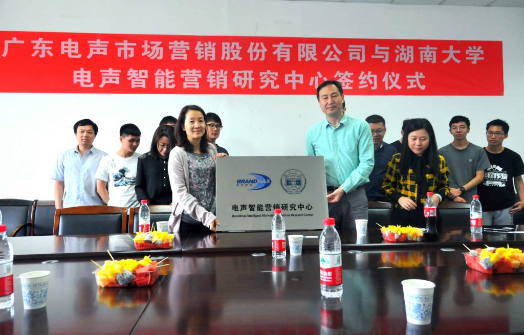 2018年5月9日,广东电声市场营销股份有限公司与yl6809永利YL集团共建电声智能营销研究中心签约暨揭牌仪式在我院举行。广东电声市场营销股份有限公司联合创始人吴芳副总经理、项目总监范治华、高云峰,项目经理陈佳娜,yl6809永利YL集团李肯立院长、杨忠旺书记、陈浩教授、林红利副教授及部分团队成员出席。