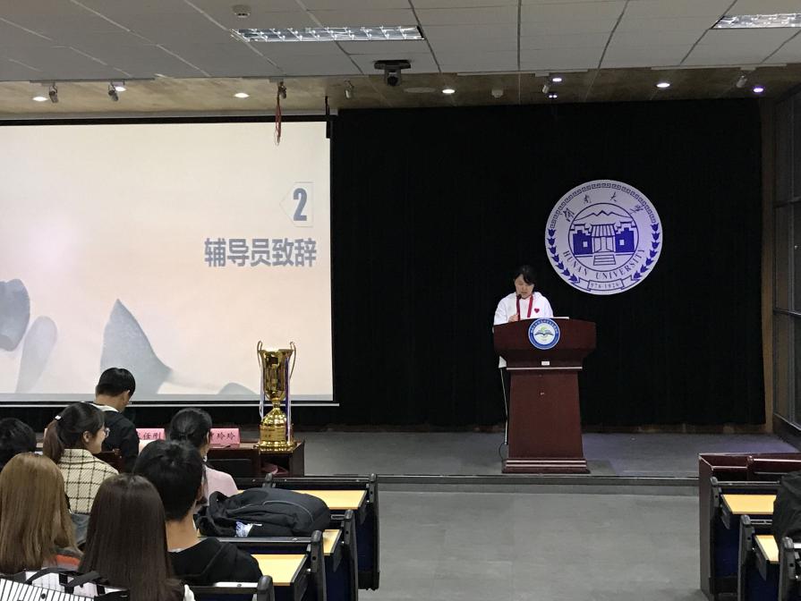 本次大会首先由辅导员贾玲玲老师总结过去一年来年级的学风建设情况。接下来年级汇报人用详细的图表、统计数据,分析了我院考研、保研、出国、就业四个方面的情况,让同学们对全院的情况有了整体的了解。