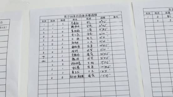 信息院每位选手都参加了多项比赛。参加50米蝶泳的王成龙和50米蛙泳的王裕文都还参加了100米仰泳和蛙泳,杨海龙分别参加了50米和100米的蛙泳比赛。金忆嵩除了参加50米和100米的自由泳,还在200米蛙泳的比赛中留下了自己坚持的身影。如果说50靠的是爆发的速度,那200米一定是坚持到底永不放弃的精神。最后一位运动员明明已经落后很多,但是依然没有放下划水的手臂,没有停止前进,他用实际行动告诉我们,比最重要的不是白纸黑字的成绩,是自己已参与过,留下了独一无二的身影。