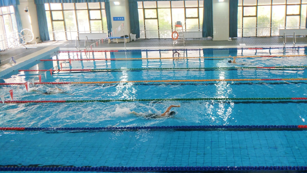 上午九点,比赛正式开始。第一场进行的是男子50米自由泳。在裁判一声震耳的枪响后,“哗”的一声,选手们几乎一齐入水,原本平静的水面顿时激起阵阵水花。选手们你追我赶,不甘落后,丝毫不亚于田径场上的激烈追逐。信息院参加本场比赛的选手是谢铭源和金忆嵩。赛后,谢铭源表示对自己的成绩并不满意,希望在接下来的50米仰泳和自由泳中有更好的发挥。