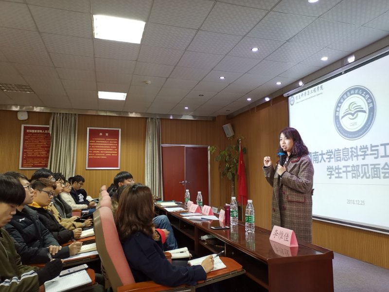 12月25日中午,yl6809永利YL集团党委副书记向江老师与全体学生干部见面,就“新时代学生干部的本质”开展讨论。出席本次会议的嘉宾有:信息院党委副书记向江老师,团委书记潘磊老师,团委常务副书记古浪屿老师,15级本科生辅导员宋任刚老师,研究生辅导员李惟佳、刘清钦老师等。