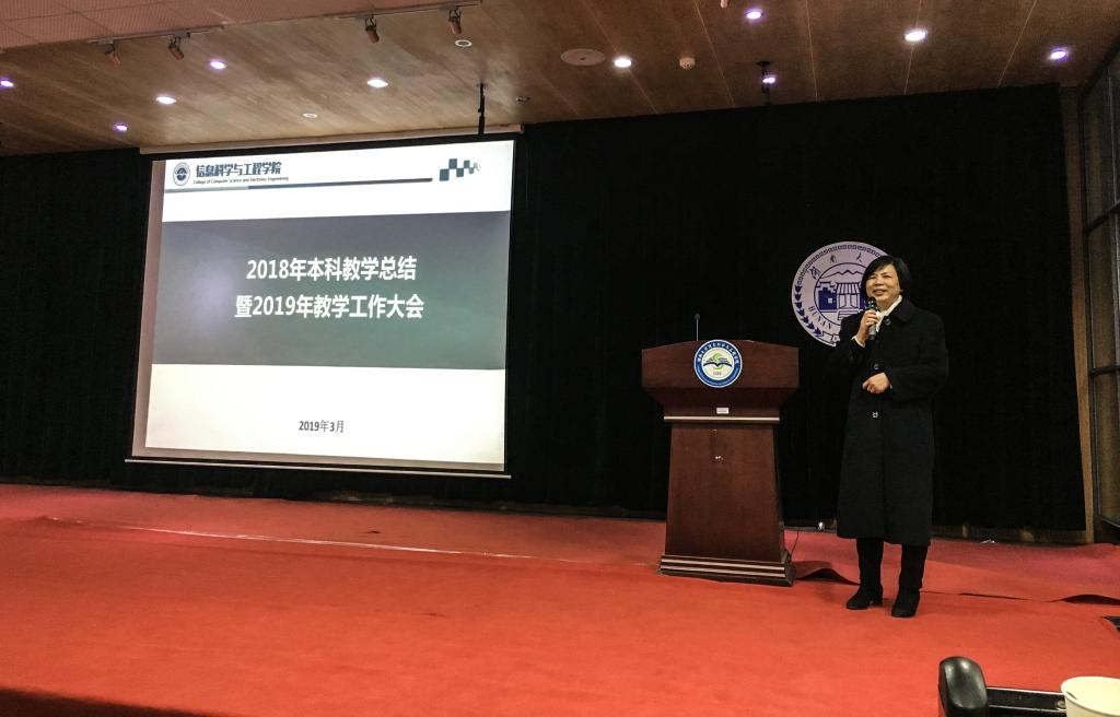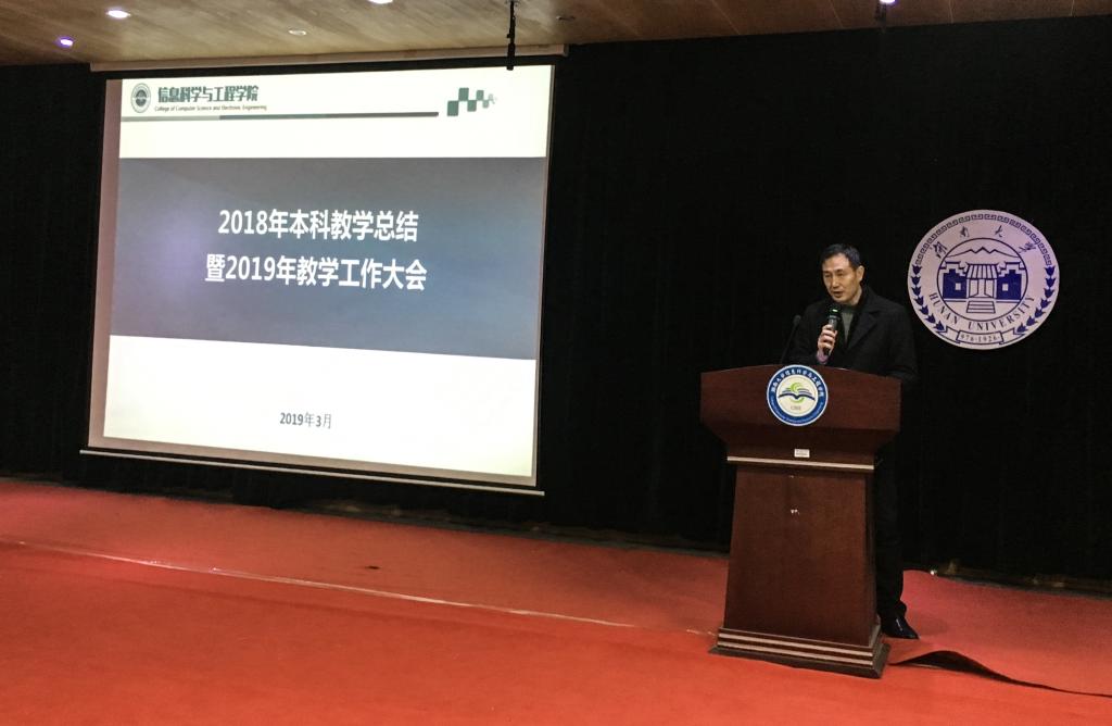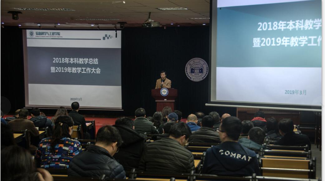 大会首先由院长助理罗娟教授作教学工作报告,报告全面回顾和总结了过去一年来学院本科教学的主要工作,围绕专业建设、课程建设、学科竞赛、创新创业等介绍了2018年教学工作主要成效,通信工程、物联网工程、信息安全三个专业通过工程教育专业认证,计算机科学与技术获湖南省首批专业综合评价全省第一,获得最高评价,新增立项国家级新工科研究实践项目,新增认定国家级精品在线课程等。同时结合新时代教育工作要求,对学院2019年教学重点工作进行了部署,提出对标一流建设一流专业,按照国家一流课程建设标准着力打造“金课”,强化专业课教学的“课程思政”建设、遴选建设一批“特色示范课堂”,通过课程评估形成持续改进的教学质量改进机制等。