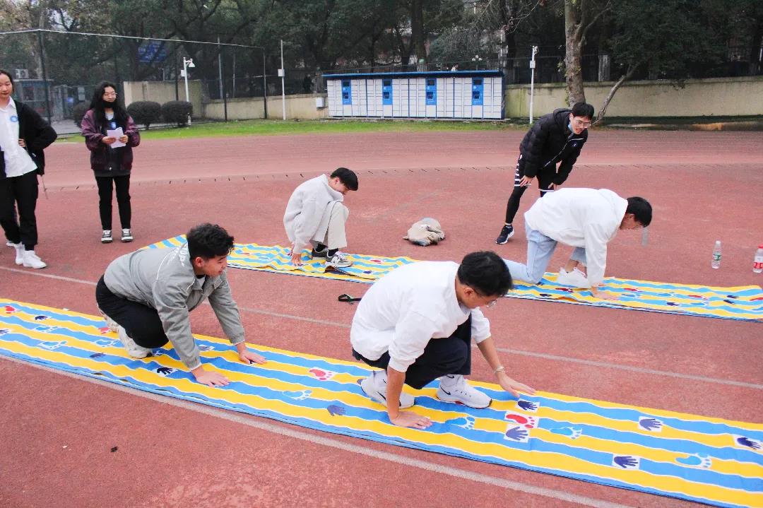 大家小跑来到印有手印,脚印的地毯前,手脚并用,通过桥梁,虽然期间有不配合,出界,踩错等情况发生,但是在五人一组通力协作的情况下,最终每个人都精确踩到了每一个印记,顺利通关。“飞夺泸定桥”用印记模拟险阻,用合作致敬英烈。这让参与者无时无刻不沉浸在历史人物的角色当中,也让大家更加深刻的感受到22位勇士创造的奇迹,以及革命斗争的艰难,从而对长征精神有了更深切的理解和体会。