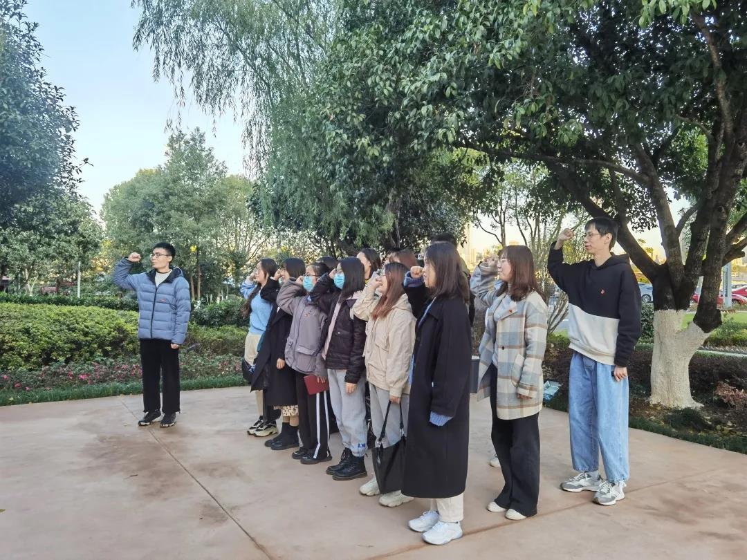 集中学习后,全体学生党支部书记前往肖劲光故居开展了实地研学。每一个展台前,每一件实物边,每一张定格历史的照片旁,支部书记们带着信仰和使命重温红色历史,感悟精神伟力。在肖劲光故居前坪,还开展了入党宣誓活动。
