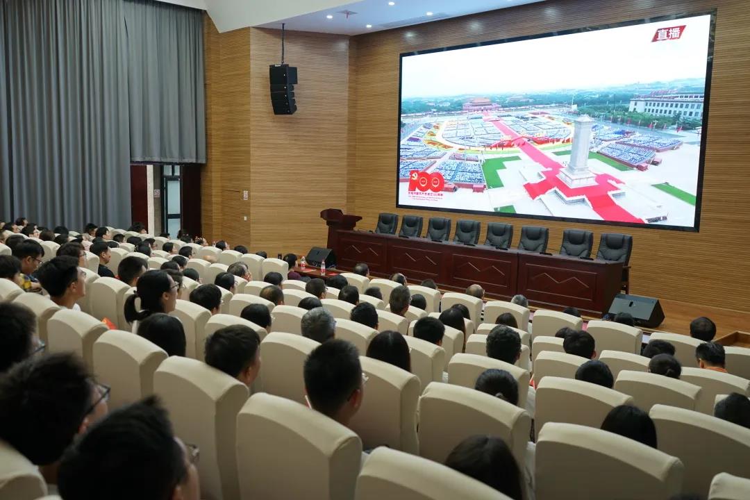 百年光辉历程 , 百年历史见证。7月1日上午8时,庆祝中国共产党成立100周年大会在北京天安门广场隆重举行。中共中央总书记、国家主席、中央军委主席习近平发表重要讲话。yl6809永利YL集团师生党员齐聚201、401报告厅,集中收看庆祝中国共产党成立100周年大会直播,向党送上诚挚的生日祝福。礼炮百响、齐步阵阵,青春誓言、强国有我,在场师生备受鼓舞、倍感振奋。