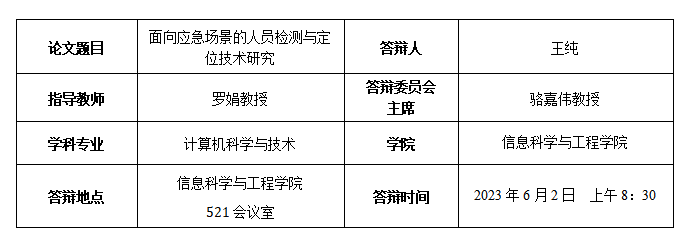 [2] 用于应急救援的人员搜救方法、装置、系统及存储介质, 202010803844.5,罗娟,王纯,章翠君,申请时间:2020.8.11,授权时间:2023.5.17. (导师第一发明人,本人第二发明人)