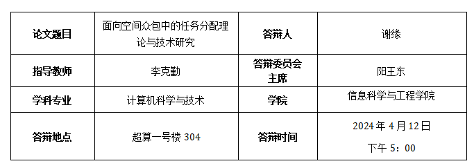 Xie Y, Wang Y, Li K, et al. Satisfaction-aware task assignment in spatial crowdsourcing[J]. Information Sciences, 2023, 622: 512-535. (SCI一区, 第一作者)