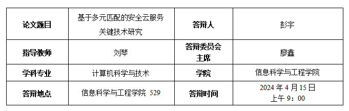 [9] 云计算环境下外包大数据动态加密关键技术研究,湖南省研究生科研创新项目,2022.01-2022.12,主持,已结题