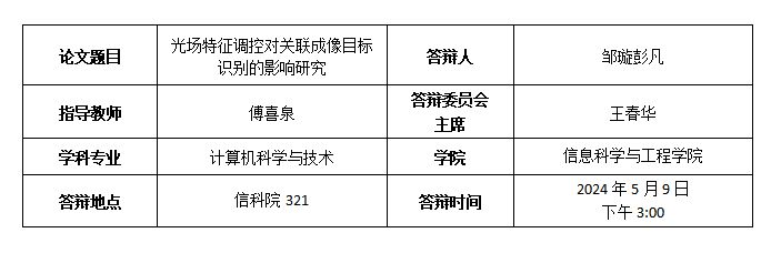 [2] Xuanpengfan Zou, Xianwei Huang, Wei Tan, Liyu Zhou,Xiaohui Zhu, Qin Fu, Xiaoqian Liang, Suqin Nan, Yanfeng Bai and Xiquan Fu. Imaging through scattering media using characteristic-enhanced pseudo-thermal light. Chinese Optics Letters