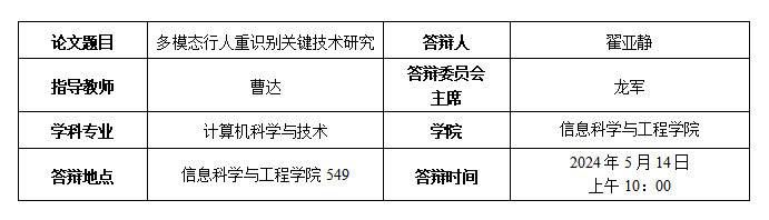 翟亚静博士生答辩公告