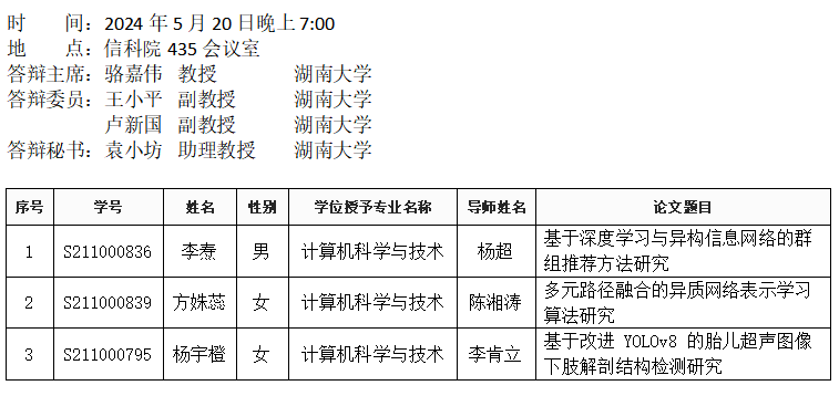 yl6809永利YL集团(计算机科学系)2024年5月20日硕士答辩公告(2)