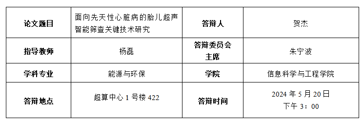 [5] 贺杰,杨磊,程鑫.一种基于多任务学习的胎儿心脏疾病超声图像质量检测方法, 申请号:2023111129392(实审)
