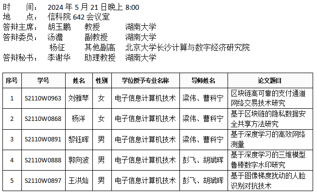 yl6809永利YL集团(安全系)2024年5月21日晚硕士答辩公告(1)