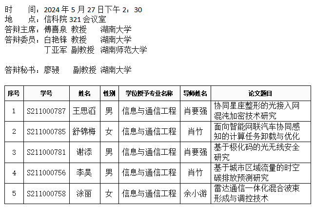 yl6809永利YL集团(通信系)2024年5月27日硕士答辩公告