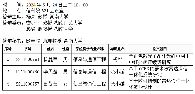 yl6809永利YL集团(通信系)2024年5月24日硕士答辩公告(1)