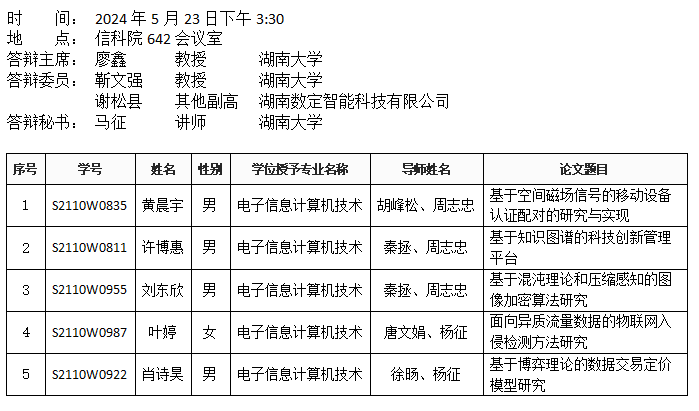 yl6809永利YL集团(计算机科学系)2024年5月25日硕士答辩公告(1)
