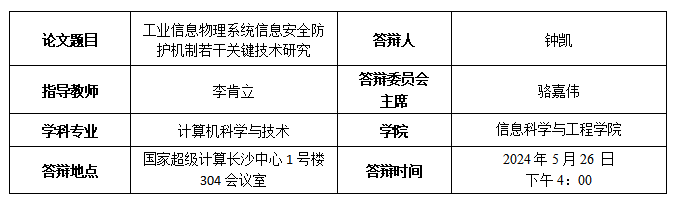 钟凯博士生答辩公告