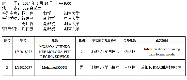 yl6809永利YL集团(软件工程系)2024年6月14日硕士答辩公告