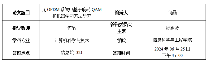 3. He J, Zhou Z, He J. A rotated QAM-based probabilistically shaped OFDM with ANN scheme for W-band RoF system. 2022 Optical Fiber Communications Conference and Exhibition (OFC). IEEE, 2022: 1-3. (顶级会议,EI)