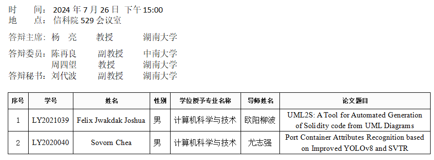 yl6809永利YL集团(软件工程系)2024年7月26日硕士答辩公告