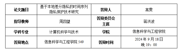 2. Wen Gao and Siwang Zhou, "Privacy-Preserving for Dynamic Real-Time Published Data Streams Based on Local Differential Privacy," in IEEE Internet of Things Journal, vol. 11, no. 8, pp. 13551-13562, 15 April15, 2024,(SCI 1,第一作者)