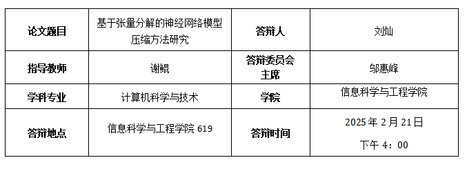 [1] Kun Xie, Can Liu, Xin Wang, Xiaocan Li, Gaogang Xie, Jigang Wen. Neural Network Compression Based on Tensor Ring Decomposition [J]. IEEE Transactions on Neural Networks and Learning Systems (TNNLS), 2024: 1-15. SCI一区, 导师第一作者)