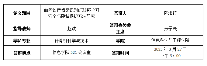陈海蛟博士生预答辩公告
