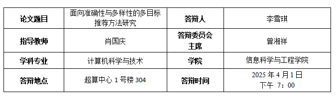 [2] Xueqi Li, Gao Cong, Guoqing Xiao, Yang Xu, Wenjun Jiang, and Kenli Li. On evaluation metrics for diversity-enhanced recommendations. In Proceedings of the 33rd ACM International Conference on Information and Knowledge Management, pp. 1286-1295. 2024. (CCF B, 第一作者)