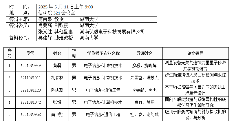 yl6809永利YL集团(通信工程系)2025年5月11日硕士答辩公告