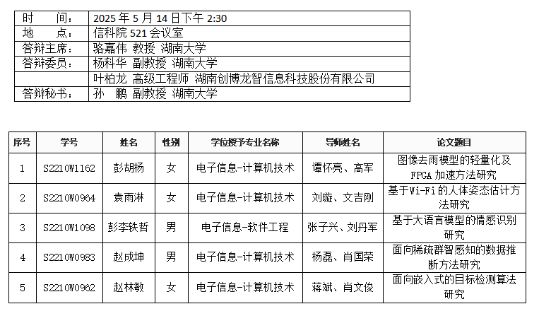 yl6809永利YL集团(计算机工程系)2025年5月14日下午硕士答辩公告(2)