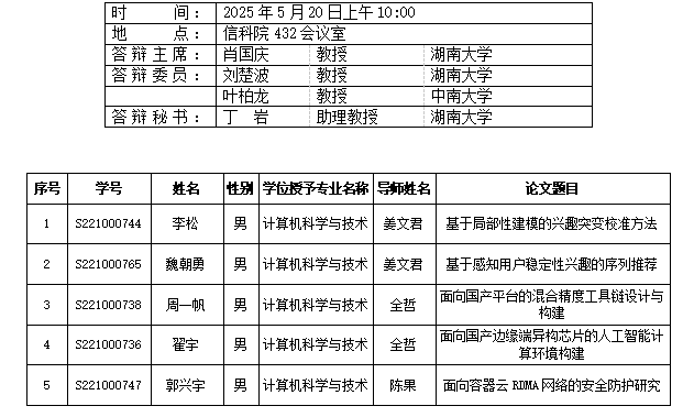 yl6809永利YL集团(计算机科学系)2025年5月20日硕答辩公告(1)