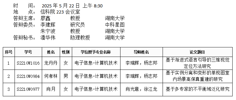 yl6809永利YL集团(智能计算系)2025年5月22日硕士答辩公告