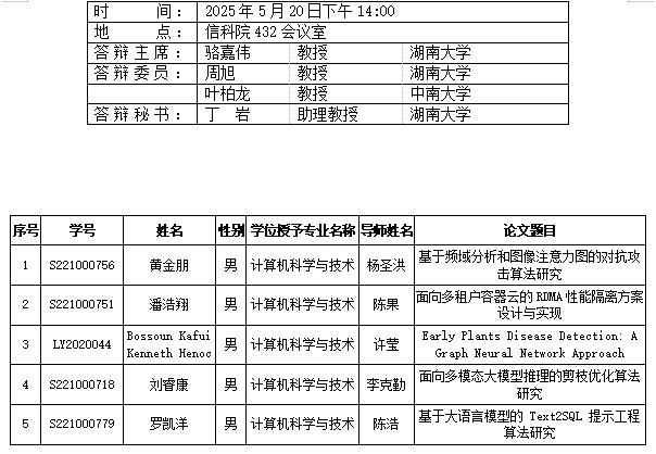 yl6809永利YL集团(计算机科学系)2025年5月20日硕士答辩公告(2)