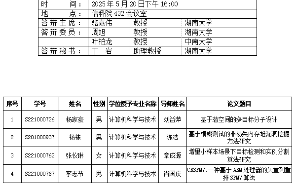 yl6809永利YL集团(计算机科学系)2025年5月20日硕士答辩公告(2)