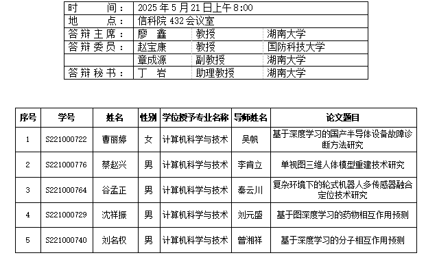 yl6809永利YL集团(计算机科学系)2025年5月21日硕士答辩公告(1)
