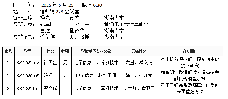 yl6809永利YL集团(智能计算系)2025年5月25日硕士答辩公告(1)