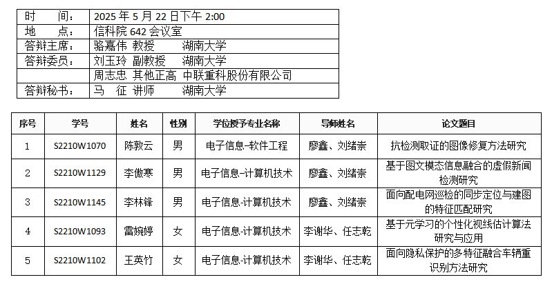 yl6809永利YL集团(安全系)2025年5月22日硕士答辩公告(1)
