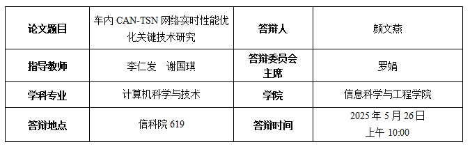 yl6809永利YL集团(通信工程系)2025年5月24日硕士答辩公告