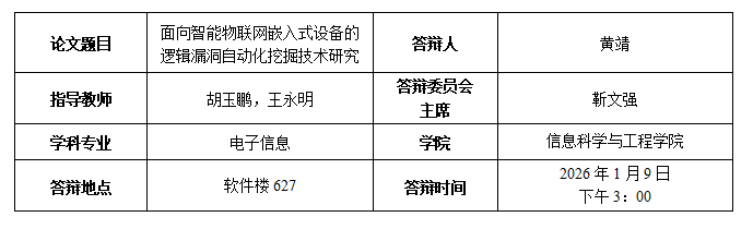 [2] Jing Huang, Min Wang, Yupeng Hu*. FIRMCCF: Detecting Custom Cryptographic Function Vulnerabilities Through Query-driven Approaches. IEEE Internet of Things Journal, 2025, DOI: 10.1109/JIOT.2025.3631834. (JCR 1区、中科院二区TOP,第一作者)